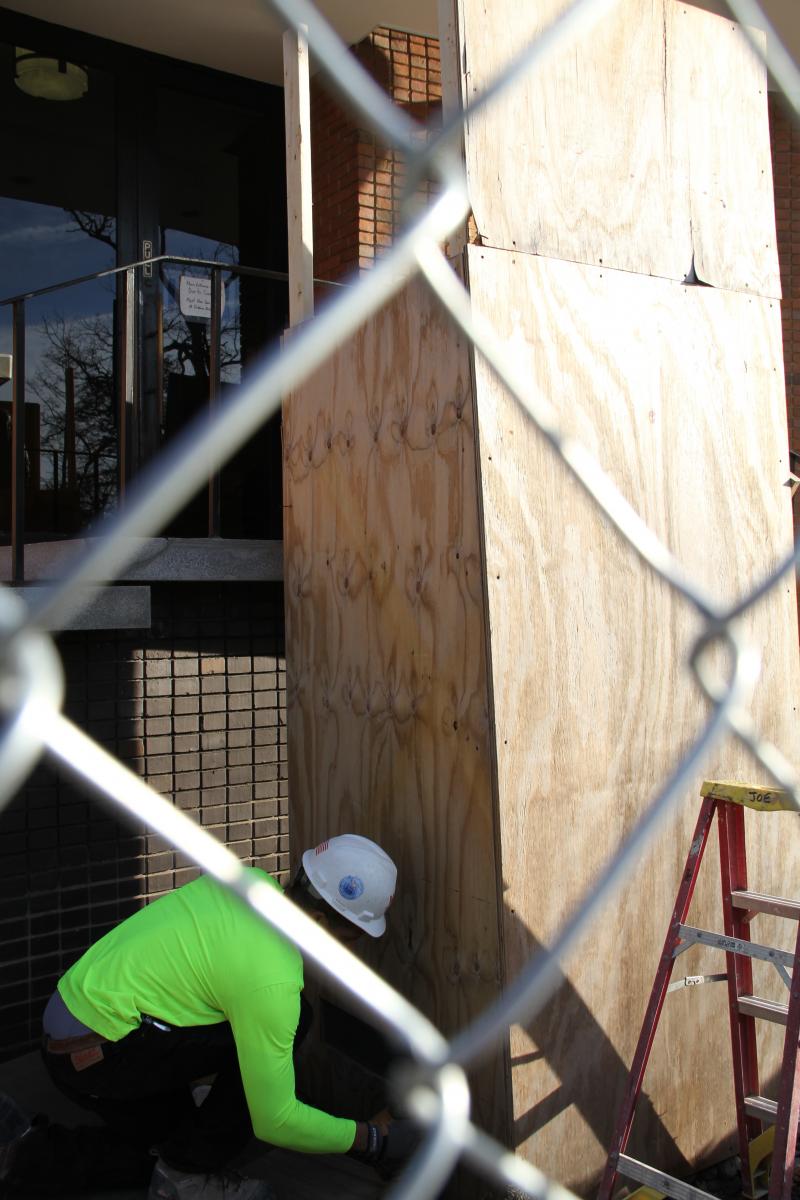 If you have taken a walk around campus recently you have probably seen the scaffolding that has surrounded Gibbons Hall being removed. After nearly a year of renovations, the transformation is close to completion. However, the restored windows, the new roof, and the transformed interior aren't the only things that have been revealed recently. After months encased in a wooden box, our Mary statue, that stands at the entrance of Gibbons Hall is once again greeting visitors to campus. Workers recently removed the box that has protected it. If you haven't seen the statue, be sure to stop and take a look. It is of special meaning to Notre Dame because it was designed by alum Katie Lynn Gutridge '95 and has welcomed people to campus since the mid-90s.